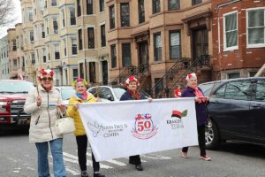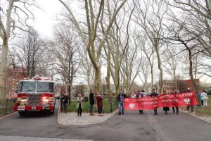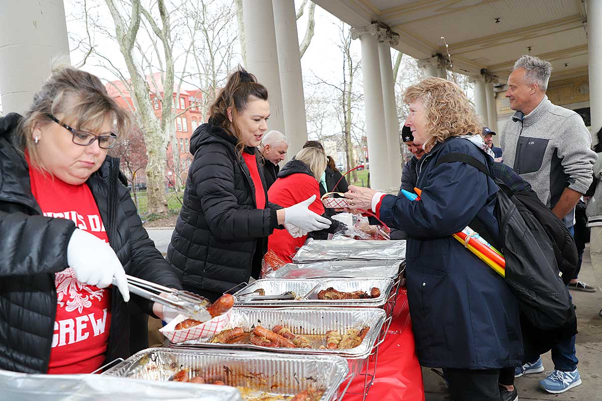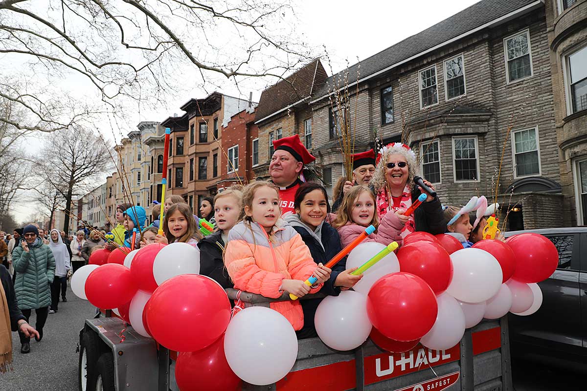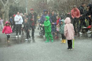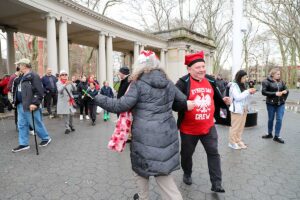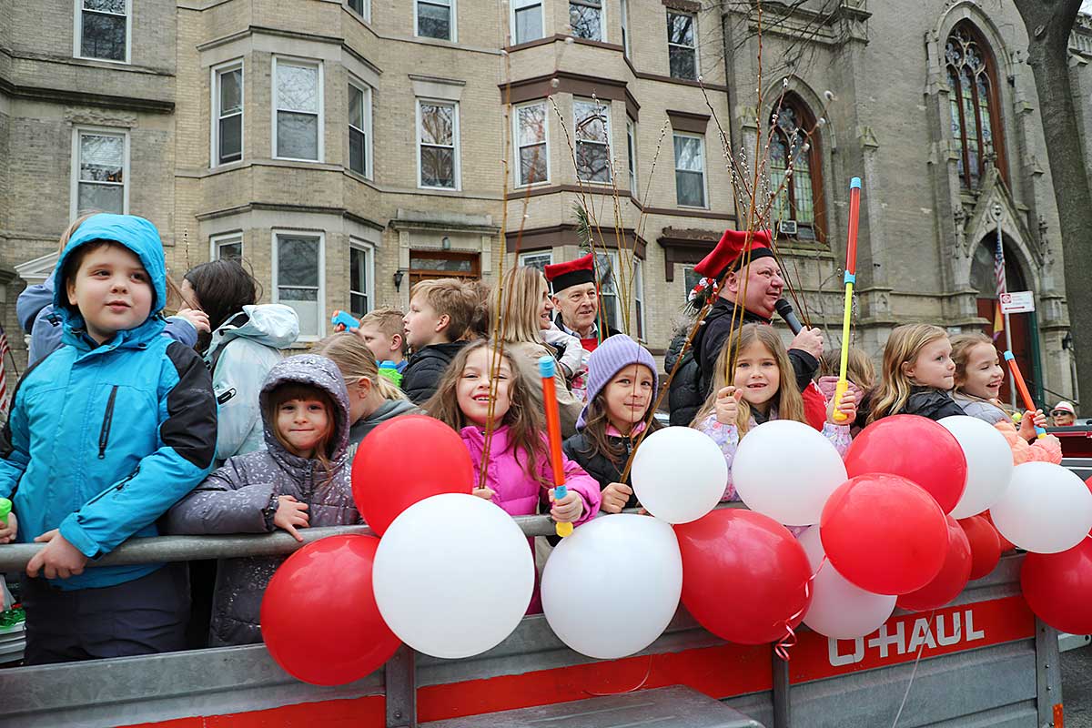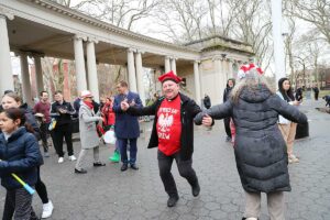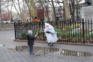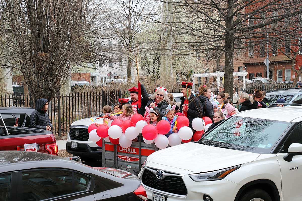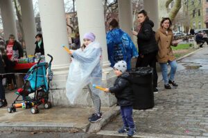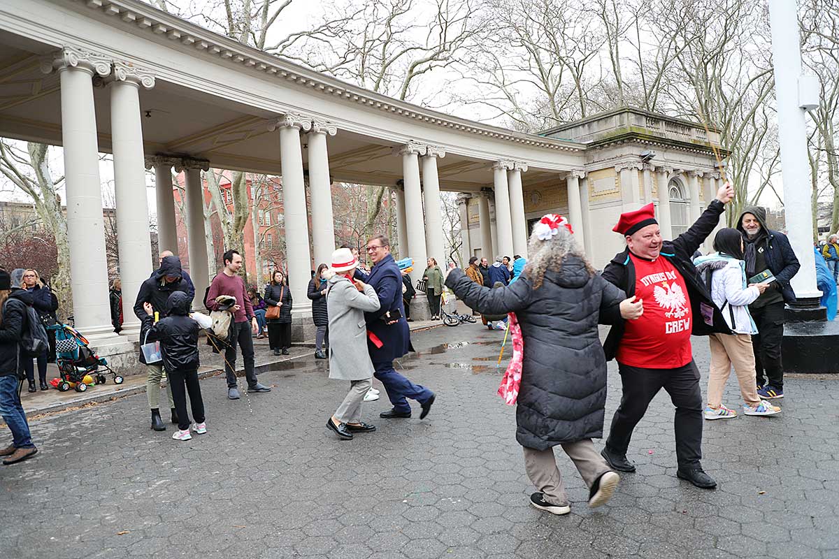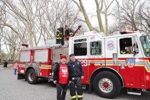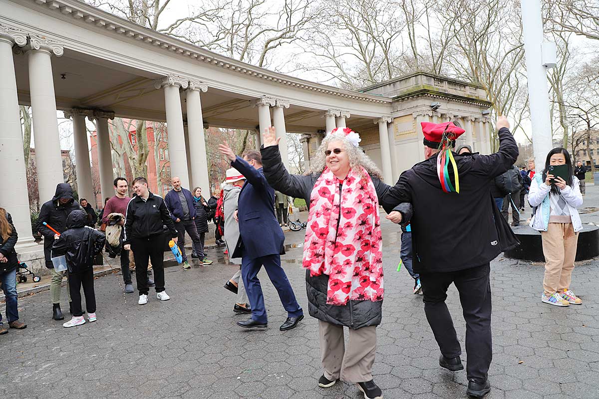 Zaraz po wejściu do parku przywitał Paradę wóz strażacki Engine 229 i zaczęła się zabawa polewania wodą “Śmigus- Dyngus”. Dzieci i dorośli biegali z psikawkami, a z góry poleciała struga wody z wozu strażackiego nie pozostawiając na nikim suchej nitki. Po tak świetnej zabawie, wszyscy mogli napić się gorącej herbaty i kawy oraz zjeść ciepły posiłek. Wszyscy organizatorzy i wolontariusze byli w czerwonych koszulkach “Dyngus Day Crew”.