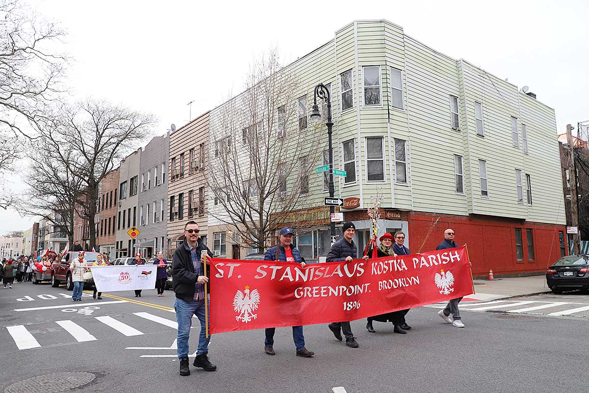 Parada ruszyła po uroczystym przecięciu czerwonej wstęgi przez organizatorów oraz gości honorowych. Organizacje z banerami prowadziły całość, a za nimi barwny tłum i platforma z dziećmi z baziami w rękach, z ks. proboszczem Grzegorzem Markulakiem, Kasią Drucker, i Tadeuszem Nowakiem śpiewający znane wszystkim pieśni biesiadne oraz “WHAT DA HECK IS DYNGUS DAY”, “WE LOVE DYNGUS DAY”, “EVERYBODY’S POLISH ON DYNGUS”, i nowy utwór “IT’S DYNGUS DAY” gdzie refreny są języku polskim i angielskim, które puszczał DJ Luka. Po drodze dołączali się do barwnego korowodu przypadkowi przechodnie i mieszkańcy. Wszyscy paradowali ulicami podążając do parku McGolrick, który znajduje się na Greenpoincie na Brooklynie w Nowym Jorku w pobliżu kościoła, gdzie czekały na uczestników przysmaki polskiej kuchni.