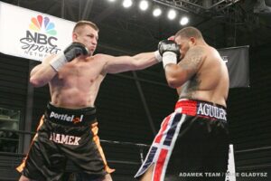 Oglądałem powtórkę walki i na spokojnie mogłem ocenić jej przebieg. Zabrakło kilku sekund w trzeciej rundzie, gdy po lewym sierpowym Nagy zatańczył Break Dance w ringu. Czwarta runda też pokazała, że mogłem doprowadzić do K.O. Niestety stała się rzecz nieoczekiwana, po wielu silnych ciosach zadanych w pierwszych trzech rundach, poczułem pieczenie w lewej ręce. W ferworze walki nie zastanawiałem się skąd jest ten ból, najpierw w lewej, a następnie w prawej ręce. Dopiero statystyki ciosów 305 celnych na 676 ogółem pokazały, ile ich zadałem, w większości lewą ręką. Redaktor Janusz Pindera wielokrotnie zwracał na ten fakt uwagę. Wie bardzo dobrze, że choć nie walczę w ringu z odwrotnej pozycji, to cios z lewej ręki mam mocniejszy. Warto zobaczyć moje wcześniejsze walki, aby potwierdzić ten fakt. Cieszy mnie wysokie tempo walki, jakie obaj podyktowaliśmy. Widać było, że Nagy Aquilera poważnie podszedł do tej walki. Wielu moich rozmówców po walce podkreślało, że przebieg i styl walki, był podobny do tej z Chrisem Arreolą. Wtedy w Houston to Chris nabawił się kontuzji dłoni, a teraz ja. Na pewno ból nie pozwalał mi na zadawanie silnych ciosów, począwszy od 4 rundy. A szkoda, bo gdyby nie ta kontuzja, to walka byłaby jeszcze ciekawsza.