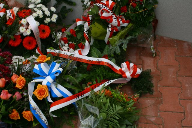Wśród wielu wiązanek kwiatów złożonych pod pomnikiem były również kwiaty od pasjonatów historii lotnictwa, Muzeum AK i ŚZŻ AK.