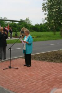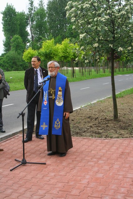 Tablicę odsłonili członkowie rodzin poległych lotników a poświęcił ją Ojciec ( pilot) Dominik M. Orczykowski OFM, kapelan polskich lotników.