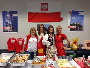 Pracownicy lotniska mogli też posmakować polskich dań i deserów, zapoznać się z biografią wielkich Polaków na przełomie historii i współcześnie. Wszyscy obecni mogli też podziwiać różdorodną muzykę polską. Polsko-Słowiańska Federalna Unia Kredytowa ofiarowała drobne upominki dla pracowników lotniska, którzy odwiedzili miejsce uroczystości.