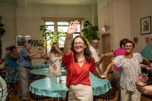 Na koniec była loteria z prezentami oraz Managerka przekazała życzenia dla obecnych na sali złotych Jubilatów: Wandy i Andrzeja. Ulubiony DJ został już zaproszony na następną zabawę za miesiąc. Wrzesień to Międzynarodowy Dzień Ośrodków Seniora. Pete McGuinness zaprasza na szereg spotkań z tej okazji.