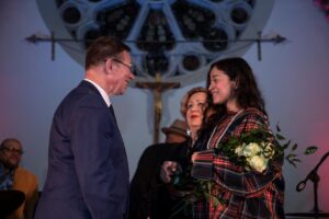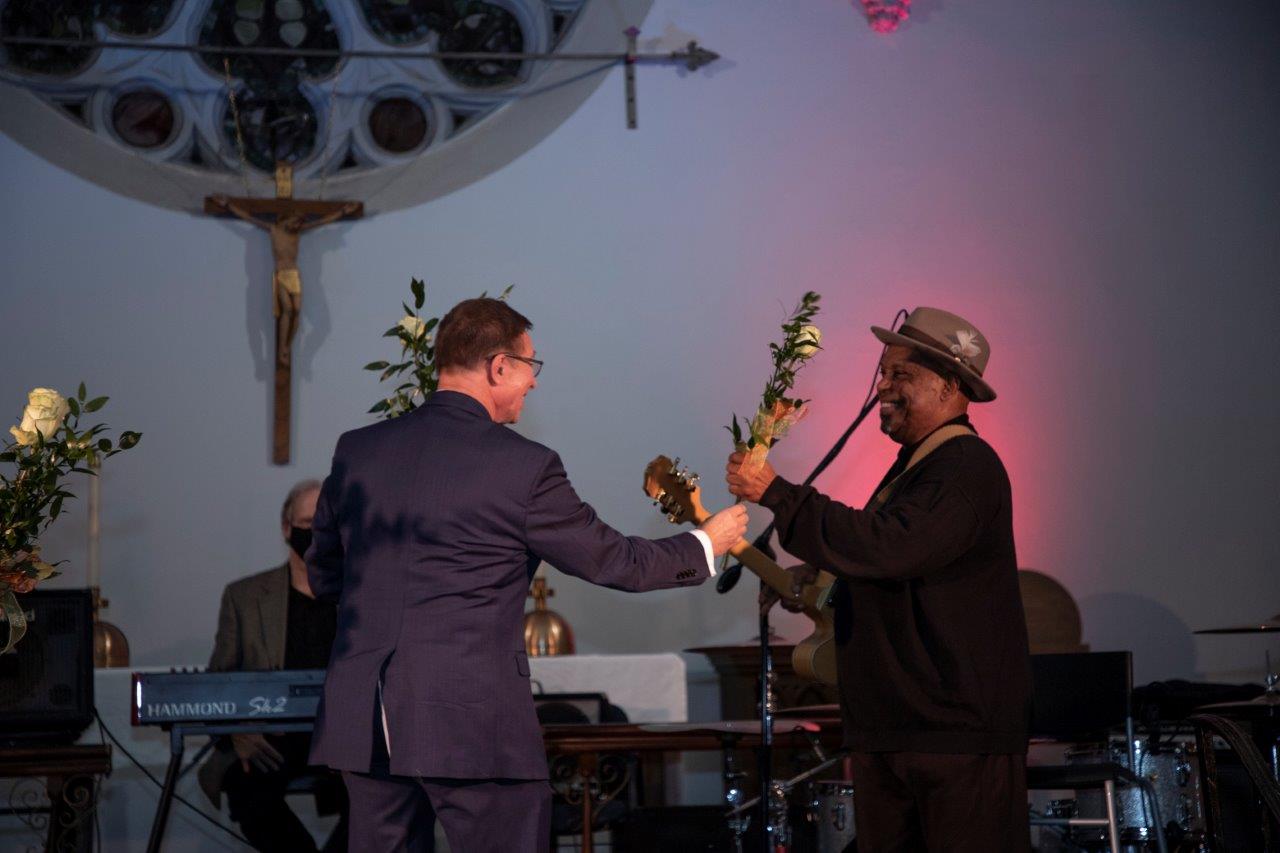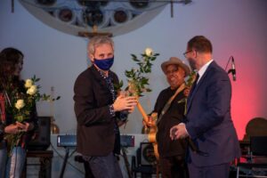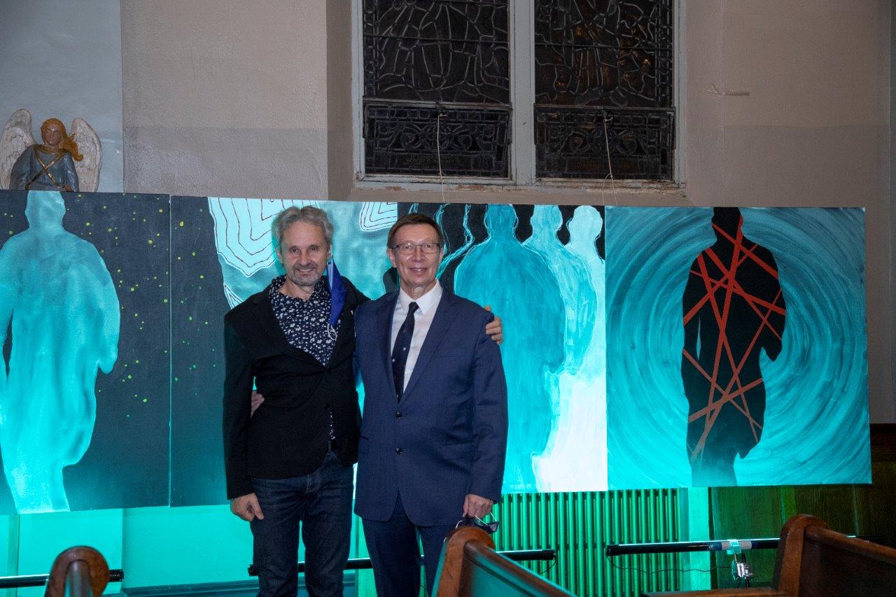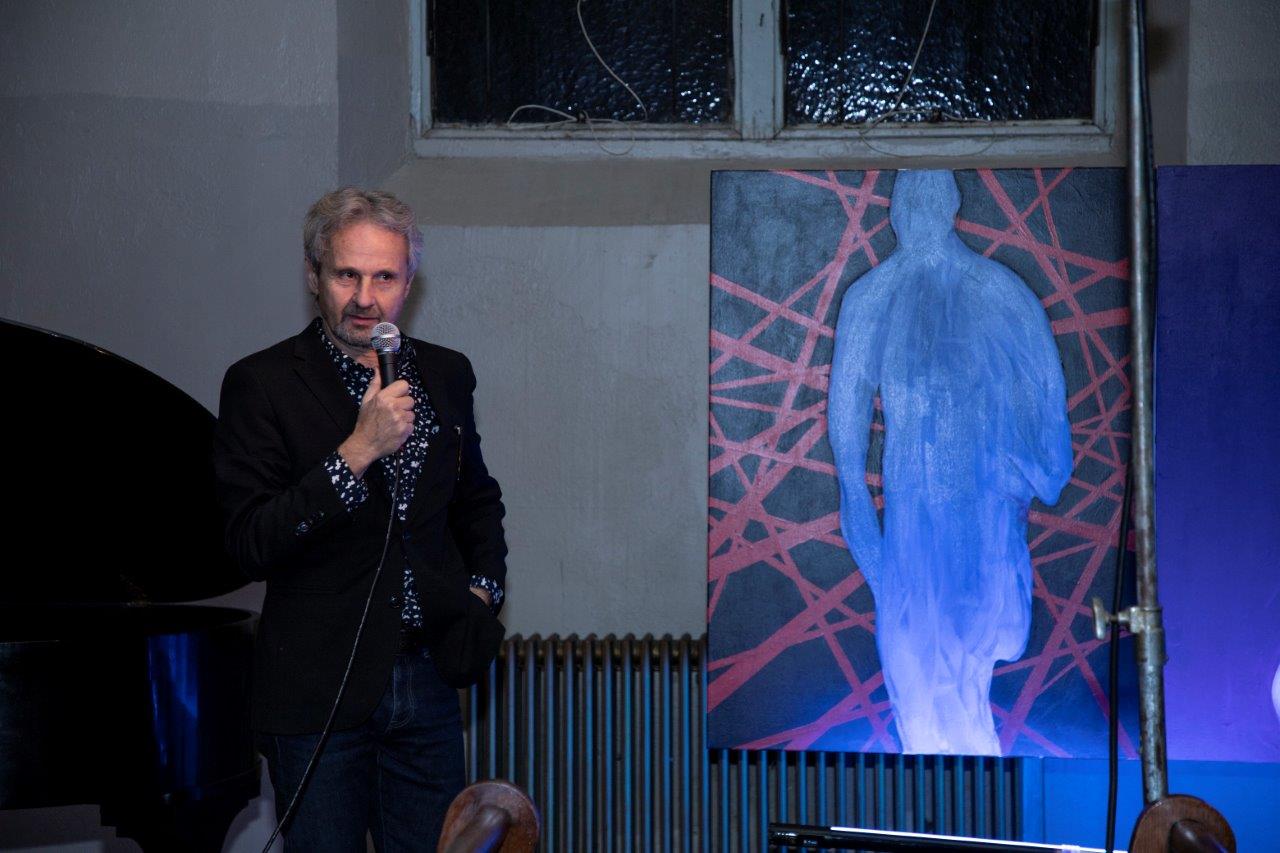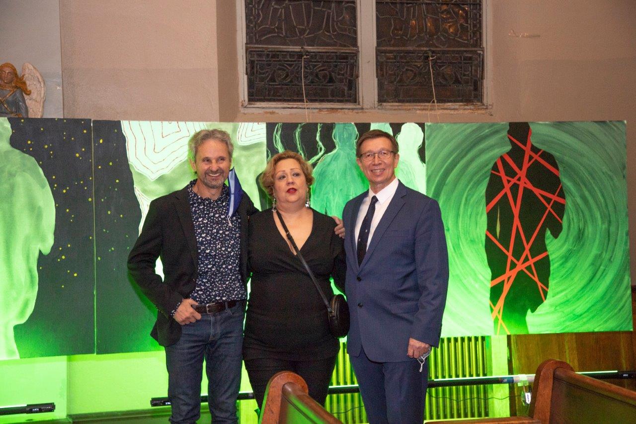 Po koncercie zespołu Green Secret, Anna Żak , sekretarz NYDAI przeprowadziła wywiad ze znakomityn artystą, architektem i bisnesmenem Bolkiem Ryzinskim o jego pracy artystycznej i wystawie Virus Man, od której został zaporzyczony tytuł wieczoru. Ten znakomity artysta przygotował tematyczną wystawę człowieka otoczonego wirusem. Od jasnych kolorow i czerwonych lini wirusa do czerwonej postaci którą wirus opanował bezwzględnie. Piękna symbolika oddaje obecną sytuację w jakiej żyjemy. Wystawa wywiera duże wrażenie, jest autentyczna, symboliczna i na wysokim poziomie artystycznym. Bolek Ryzinski okazał się znakomitym obserwatorem i malarskim dziennikarzem opowiadającym o czlowieku opanowanym przez koronowirusa.