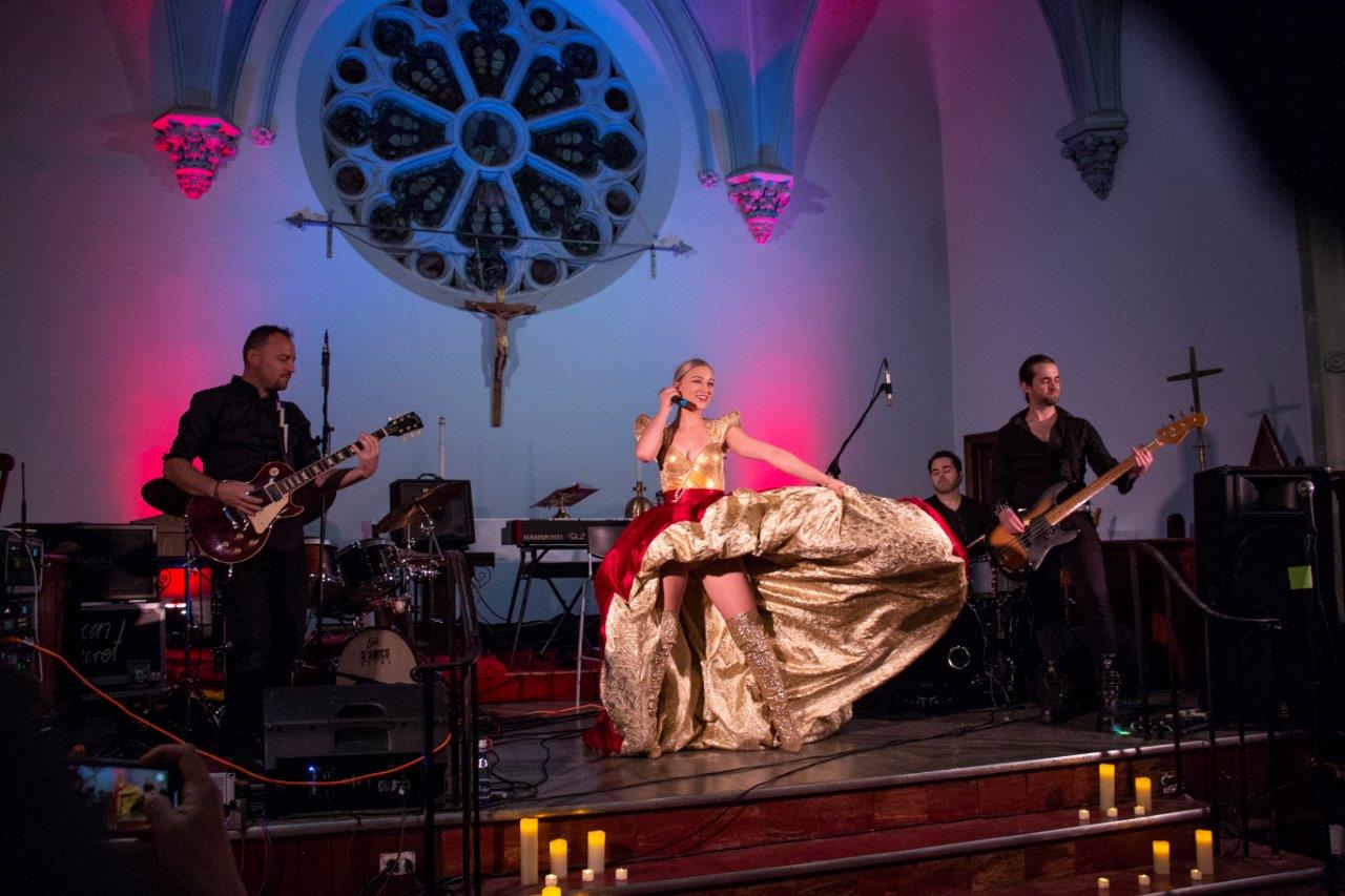 Anna Matlewska młoda polska wokaliska jest współzałożycielem zespołu. Do jej sukcesów trzeba zaliczyć że znalazła się w finale Polskiej edycji popularnego show telewizyjnego w tańcu “So you Think You Can Dance”. Obecnie próbuje sprawdzić się jako wokalistka rokowa. Prezentuje się na scenie znakomicie, jej dynamiczny ruch sceniczny, piękny kostium i wspaniała sylwetka przyciągała oko widza. Skromna publiczność ze względu na koronawirusa przyjęła Annę Matlewską bardzo ciepło. Zespół tworzą muzycy: Marcin Nicpon, gitara; Reda Woodcock, gitara basowa; Toni Eboli, perkusja. To już jest tradycja festiwalu że przedstawia młodych artystów na początku ich kariery.
