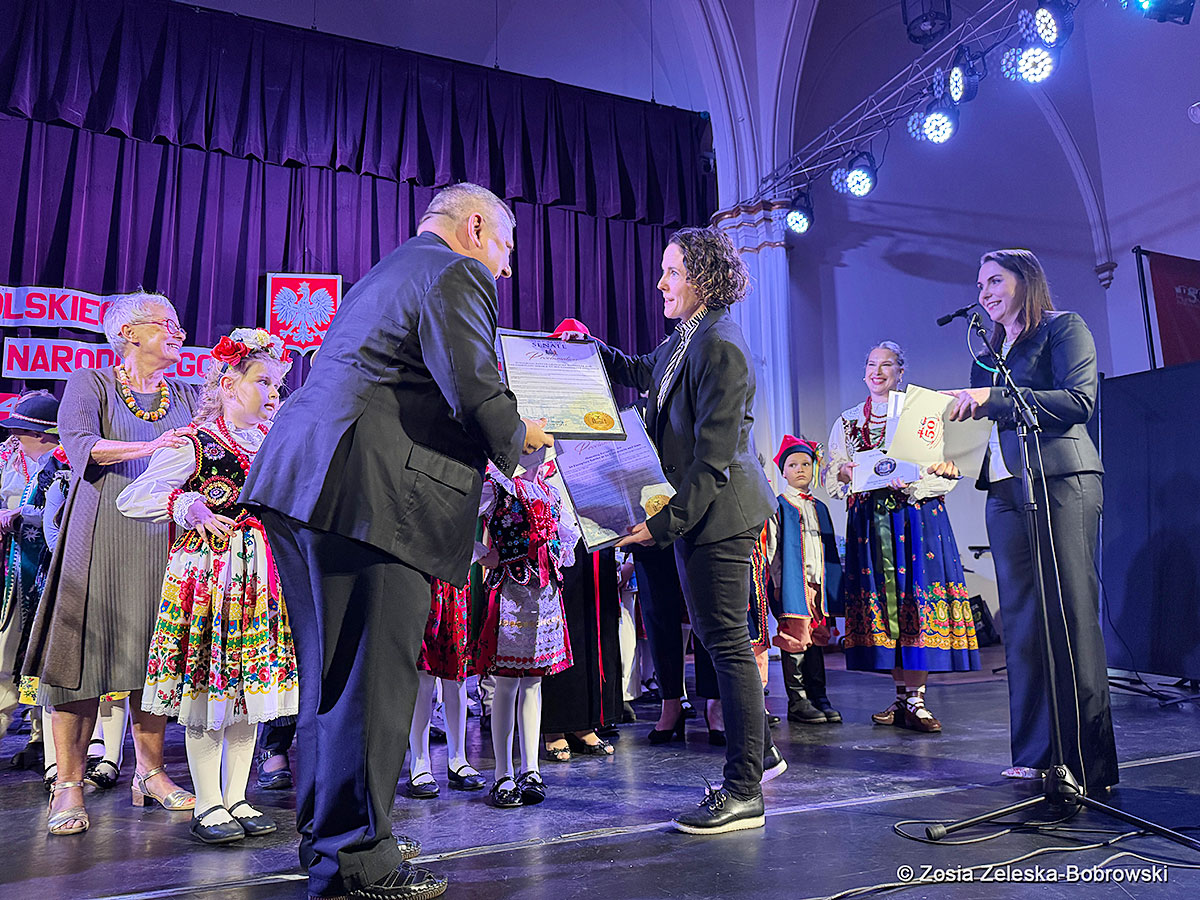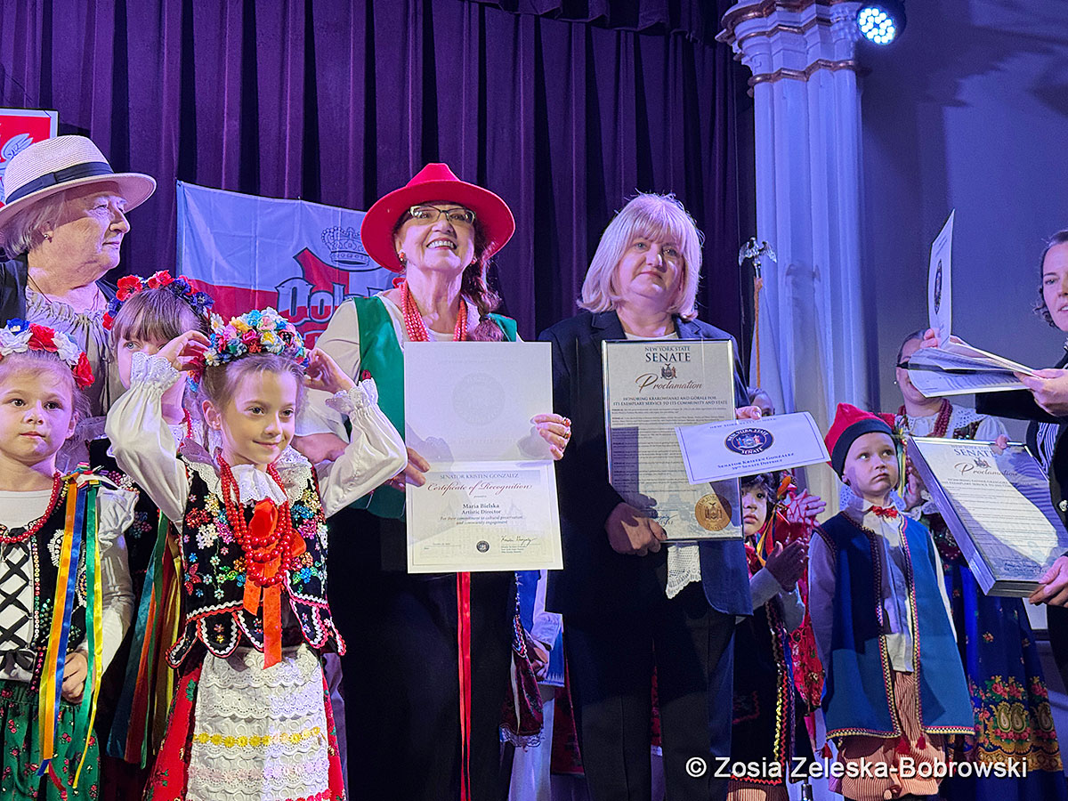 Po czym prezes rady dyrektorów Centrum Polsko-Słowiańskiego Paweł Pachacz wręczył specjalne wyróżnienie dla grupy Krakowianki i Górale od prezydenta Brooklynu Antonio Reynoso.