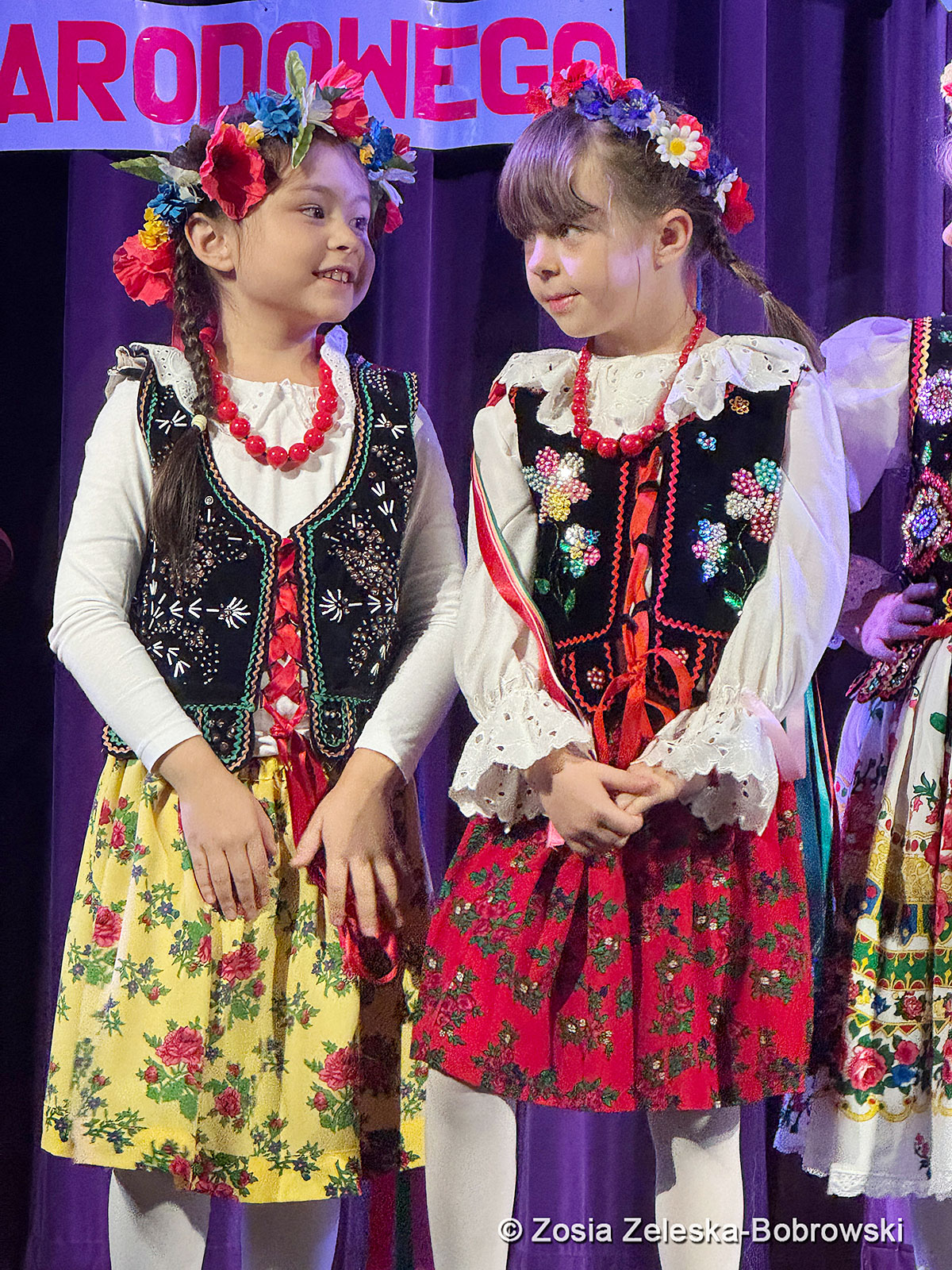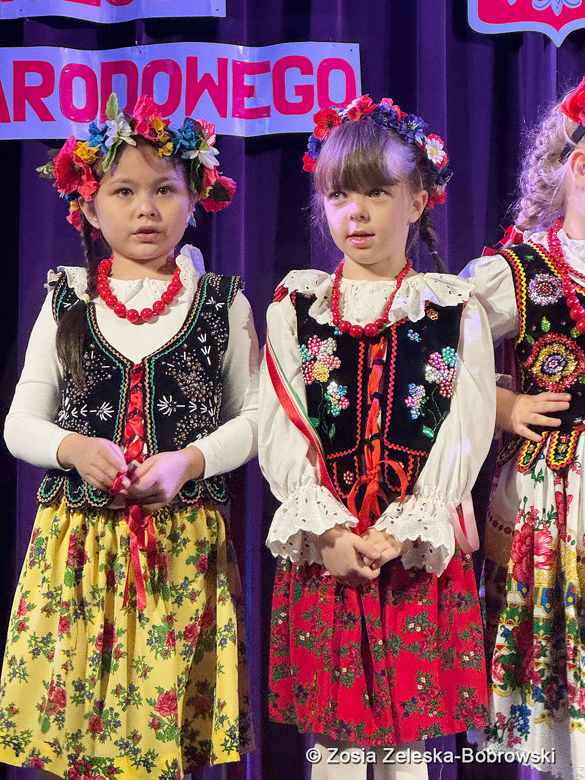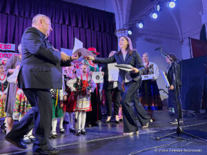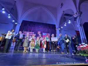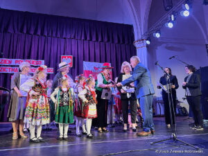 Rozpoczęli laureaci, czyli grupa dziecięca Krakowianki i Górale, którzy pięknie zaśpiewali “Hej bystra woda”i zatańczyli suitę góralską, piosenki z Krakowa, “Krakowiaczek jeden”, “Jestem sobie krakowianka” oraz piosenkę patriotyczną “Piękna nasza Polska cała”. Dyrektorem grupy jest Elżbieta Hetnar, dyrektorem artystycznym Maria Bielska, dyrektorem muzycznym Halina Kalitka,a choreografką Joanna Bis.