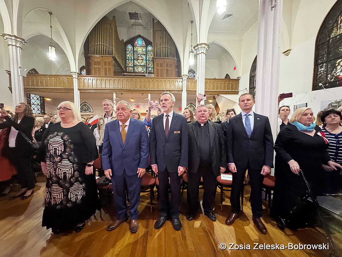 Uroczystość rozpoczął zespół Krakowianki i Górale który odśpiewał hymny narodowe przy akompaniamencie Haliny Kalitki. Inwokację wygłosił ks. Grzegorz Markulak, proboszcz parafii św. Stanisława Kostki na Greenpoincie. Następnie głos zabrali honorowi goście: Justyna Gollob-Park, konsul. Emily Gallagher, przedstawicielka dystryktu 50 w NYS Assembly, Lincoln Restler, radny dystryktu 33, który obejmuje m.in. Greenpoint, Shawna Morlock, Dyrektor ds. kontaktów z lokalną społecznością w biurze stanowej senator Kristen Gonzalez, która reprezentuje dystrykt 59.