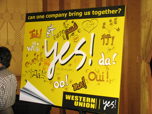 ENGLEWOOD, Colo. (18 marca 2009 r.) – Po raz pierwszy w 150-letniej historii firmy, Western Union rozpoczęła ostatnio szeroką o charakterze globalnym inicjatywę reklamy marki, pod hasłem tak! Ta kampania dotyczy ludzi na całym świecie, dla których przesyłki pieniężne za granicę i za ocean dają możliwość spełnienia ich nadziei i marzeń. Szacuje się, że w 2008 roku, nasi klienci przesłali swoim bliskim w gotówce prawie 400 miliardów dolarów.