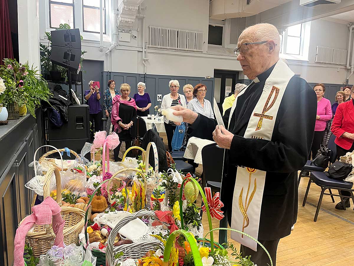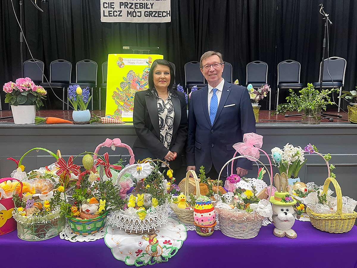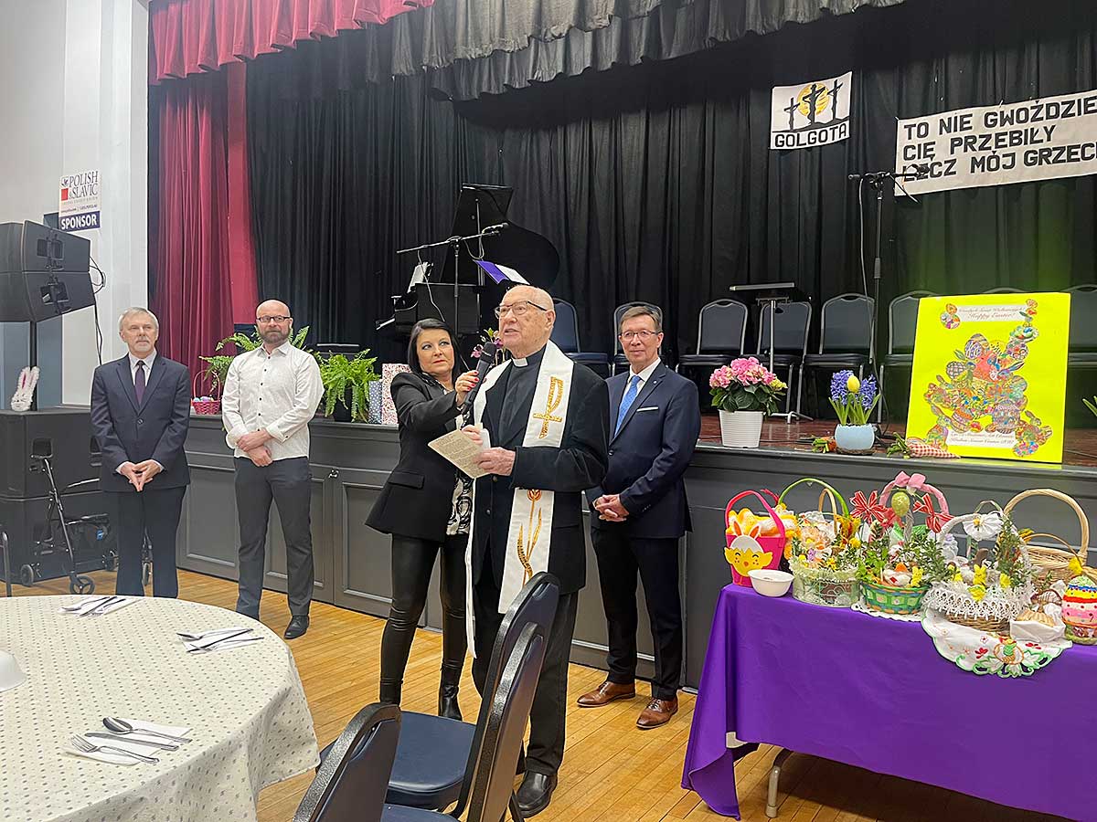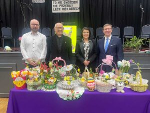W Centrum Seniora “Krakus” w Wielki Piątek, 29 marca, odbyła się specjalna uroczystość z tego powodu. Ksiądz Józef Szpilski z parafii Św. Stanisława Kostki przyszedł do seniorów, aby wspólnie się pomodlić oraz pobłogosławić i poświęcić potrawy w koszyczkach. Święconka jest najważniejszą wielkanocną tradycją. Pokarmy, które są w koszyczku, mają symboliczną wartość, dlatego muszą się tam znaleźć: baranek, chleb, jajka, sól, wędlina, masło, chrzan, babka wielkanocna, kurczaczek lub zajączek. I choć zazwyczaj z koszyczkiem idziemy w Wielka Sobotę to w Krakusie zawsze odbywa się to w piątek. Na tę uroczystość przybyli: Prezes Centrum Polsko-Słowiańskiego, Marian Żak, Dyrektor Wykonawcza CPS, Agnieszka Granatowska, Skarbnik CPS, Zbigniew Solarz, Kierownik Klubu Seniora Krakus, Artur Pustula oraz Koordynator Programu Krakus, Urszula Galej.