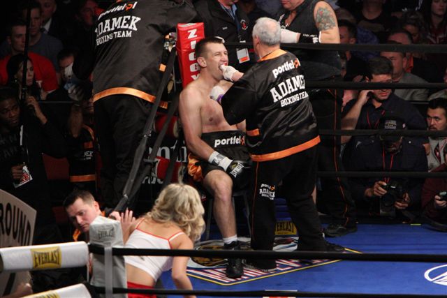 Przed pojedynkiem wieczoru jeszcze jeden Polak odniósł sukces. Przemysław Majewski (15-0,10 KO) pochodzący z Radomia po ciężkiej walce gdzie obaj zawodnicy mieli przecięte łuki brwiowe posłał na deski w ostatniej 8-mej rundzie Amerykanina Eddiego Caminero (7-4, 7 KO) wygrywając tym samym przez techniczny nokaut. Była to jego 15-ta walka w wadze junior półciężkiej, pozostał więc niepokonany.