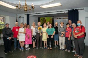 Na wernisaż przybyło wiele osób, przedstawiła go Monika Dybka, Case Manager, Northside Senior Center. Następnie Grzegorz opisywał poszczególne prace. Na koniec pokazał na ekranie archiwalne zdjęcia pochodzące z konserwacji słynnego pomnika Króla Jagiełły w Central Parku. Ciekawym elementem wystawy był happening, film przedstawiający grę Grzegorza z jabłkiem. Na wernisażu obecny był znany dziennikarz, pisarz i poeta Janusz Szlechta, który sprzedawał swoje książki.
